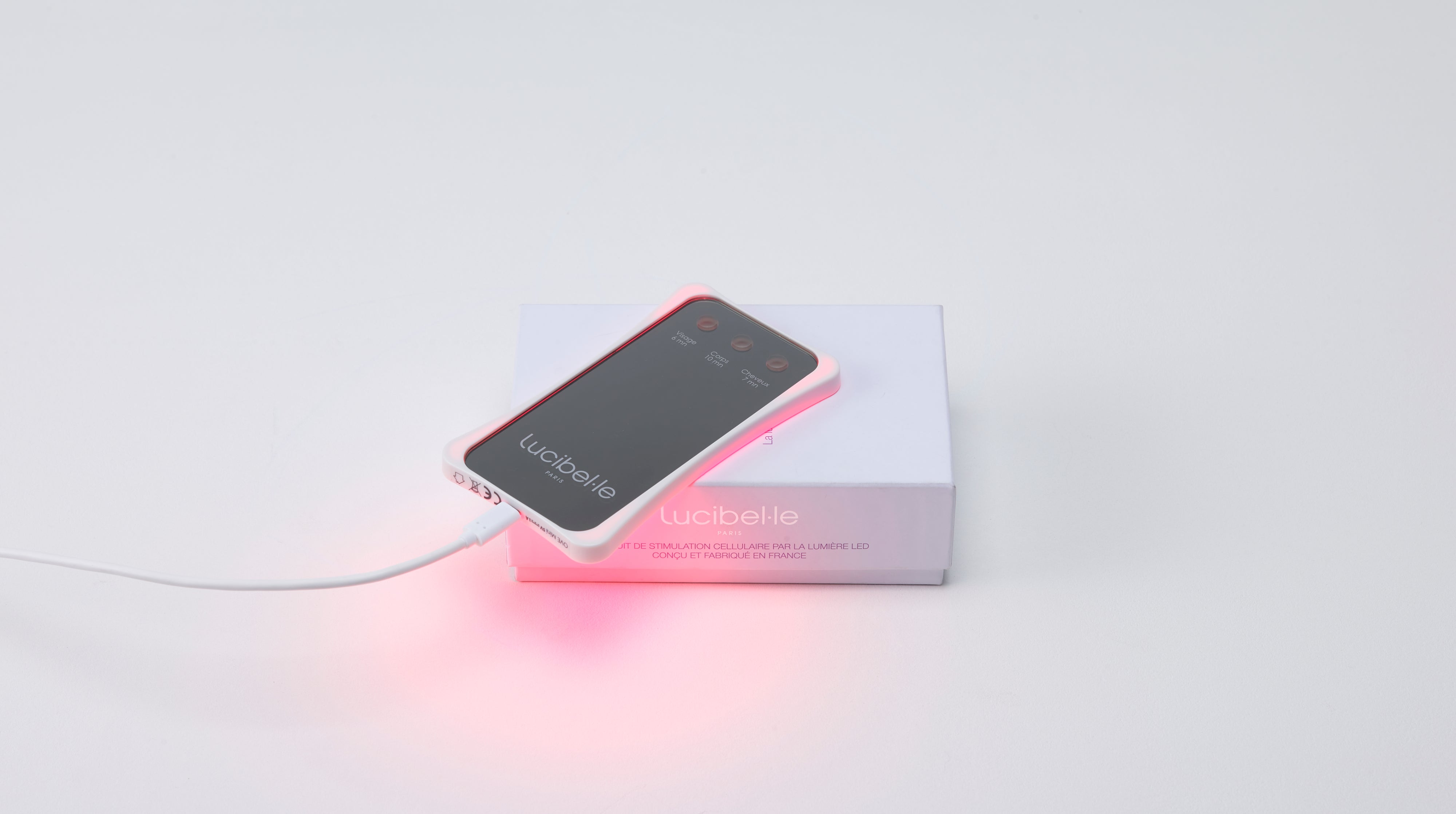 – Branchez le OVE Mini, mettez les lunettes fournies et appuyer sur le programme souhaité (« visage », « corps » ou « cheveux ») pour commencer la séance